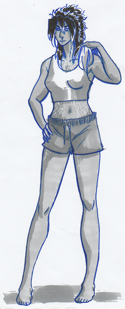 Credo — Complice la madre chierica e la propria discendenza Empyros, è divenuta una seguace di Veeridal: conosce bene il credo e ogni volta che si passa davanti un luogo del culto, fa una breve preghiera o riverenza per la dea. Ha l'abitudine alla sera e alla mattina di bruciare un piccolo incenso aromatico su una statuetta votiva che tiene sul comodino, mormorando qualche preghiera rituale. Ha rispetto verso tutte le divinità, perfino Lodmaq, conscia che sia necessario avere anche una parte di vizi per mantenersi sulla retta via ed avere libero arbitrio, e perfino per Heith e Fehor, che pur essendosi ribellati rappresentano leggi fondamentali del cosmo di Valhalla. In generale non critica nessuno per seguire un culto o un altro. Spesso però, quando perde la pazienza o si irrita, finisce per tirare qualche piccola bestemmia, un viziaccio che non riesce proprio a togliersi; l'unica consolazione è non tirare mai in ballo la Signora della Vita. | Kuroha è, sopra ogni cosa, imponente: la sua altezza esagerata è qualcosa con cui ha imparato presto a scendere a patti, cresciuta molto già in tenera età. Non si vergogna della propria altezza, ma ha imparato come - in bene e in male - possa a volte lasciare intimorita la gente: perciò quando tratta con qualcuno di più piccolo, specie se le importa di quella persona, cerca di abbassarsi un po' e curvarsi per essere meno grossa. Il resto del tempo il suo portamento è fiero, schiena ritta e sguardo vigile: ha davvero troppa altezza per riuscire a passare inosservata anche sforzandosi, ed ha ormai fatto l'abitudine agli sguardi curiosi. Probabilmente per questo non si fa scrupoli con la propria eccentrica capigliatura, scarmigliata e corta sopra, allungandosi sulle spalle e dietro la testa; i capelli neri sono tinti di bianco sulle punte, e quando si elettrizzano la fanno sembrare vagamente somigliare ad un istrice, nomignolo che si è sentita dare più di una volta. Porta anche la frangia, sfalzata, abbastanza corta da non coprirle gli occhi e non essere d'impiccio, e ogni tanto lega i capelli in una coda. Anche quando li taglia, dopo pochi giorni finiscono per schiarirsi di nuovo per qualche centimetro sulle estremità. La carnagione è piuttosto scura, marroncino chiaro, e su di essa risaltano le chiare cicatrici che le adornano il corpo qua e là. Più evidente del resto, però, è l'enorme voglia dalla forma reticolare che le si dipana dallo sterno, allungandosi su spalle e collo, petto, i fianchi, il ventre, finanche sull'inguine. Le venature, frastagliate e che si intersecano tra loro, ricordano vagamente la forma di un vetro spaccato. Kuroha ha questa particolare macchia sulla pelle fin dalla nascita, e da che ne sa si è gradualmente ingrandita col passare degli anni. I più se la spiegano come un'apparizione precoce delle classiche venature che segnano l'invecchiamento degli Empyros, ma per chi non conosce questa caratteristica viene scambiata spesso per una bruttissima cicatrice. Fortunatamente, vivendo al polo, è difficile che mostri abbastanza pelle da mettere in mostra questo particolare. Gli occhi di un rosso intenso hanno un taglio tipicamente occidentale, ciglia folte e sono sormontati da sopracciglia nere pronunciate. Kuroha, molto spesso, tende a cambiare espressione soprattutto muovendo le sopracciglia, e a volte scherza che "siano loro a parlare", alludendo alla propria natura non proprio chiacchierona. Le sue espressioni più frequenti sono la pacatezza e la serietà - che contribuisce ad intimorire gli altri; ma la sua voce, bassa e rilassante, aiuta a smorzare l'impressione minacciosa. Nonostante la stazza, Kuroha mantiene un fisico piuttosto femminile: spalle larghe e ben piazzate, con una vita relativamente stretta e fianchi pronunciati. In particolare le gambe, naturalmente lunghe data l'altezza, sono più muscolose facendola spiccare nella corsa e nei calci, che predilige in combattimento rispetto ai pugni. Vestiario — Favorisce tutto ciò che può essere utile anche in una situazione improvvisa piuttosto che orpelli poco pratici o costrittivi - si sente soprattutto a proprio agio in abiti semplici come tute sportive e canottiere, ma vivendo in Antartide si presenta raramente l'occasione di indossarli. Non disdegna golfoni di lana dalle stampe più strane anche se non li ama particolarmente e trova i poncho del tutto impraticabili. Ama i guanti e gli abiti di pelle foderati all'interno con la pelliccia. E' comunque assuefatta al freddo, perciò quando il clima si fa anche solo un po' più temperato è facile che abbandoni i numerosi strati per qualcosa di più fresco; e quando fa caldo non sa più cosa levarsi di dosso, sopportandolo pochissimo. Spesso se ne rimane per casa in pantaloni e reggiseno sportivo, sentendosi più libera. Predilige colori scuri o poco appariscenti: nero, toni di grigio o marrone sono ciò che indossa più di frequente. FISICO | Legami Familiari Akiraka Honden ~ Definita anche, affettuosamente, "mamma nuvola" per via dei suoi vaporosi capelli bianchi. Discretamente alta (anche se mai quanto la figlia) arrivando a 1,83 m, è una Empyros d'età meno avanzata di quanto ci si aspetterebbe vedendola, anche se ormai sfiora la soglia dei 90 anni. La maggior parte dei segni spiraleggianti a saetta tipici della sua razza sono sulla schiena ed i fianchi, coperti quindi quasi continuamente dai lunghi capelli candidi - i quali si sono schiariti prima del tempo a causa della vita intensa che ha dovuto condurre per forza negli ultimi diciotto anni circa. Le continue lotte per mettere al sicuro se stessa e la figlia hanno finito per provarla mentalmente e fisicamente; nell'ultima ha subito quello che sembra un avvelenamento o contaminazione e dei danni alla psiche, i quali l'hanno provata in tutto il corpo ormai costringendola quasi continuamente a letto e causandole di frequente episodi di perdita di memoria per brevi periodi, oltre un graduale sgretolamento o annebbiamento dei ricordi più lont